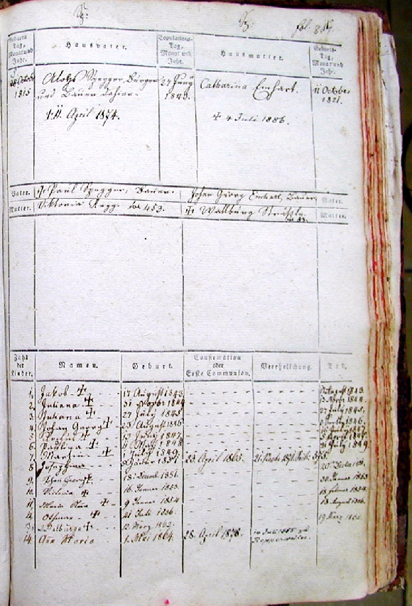 Familienregister Binzwangen, Seite 867, Familie des Alois Spegger
